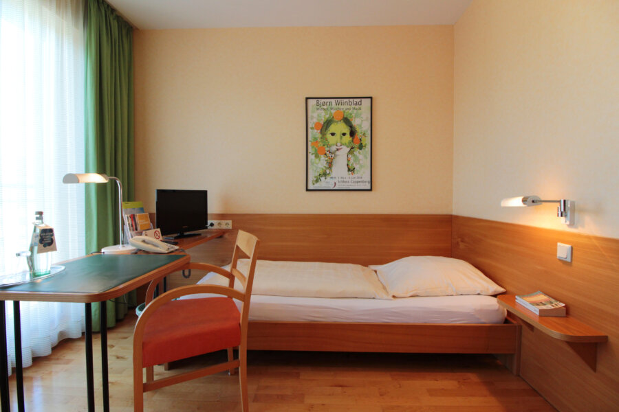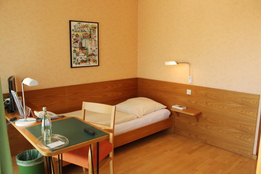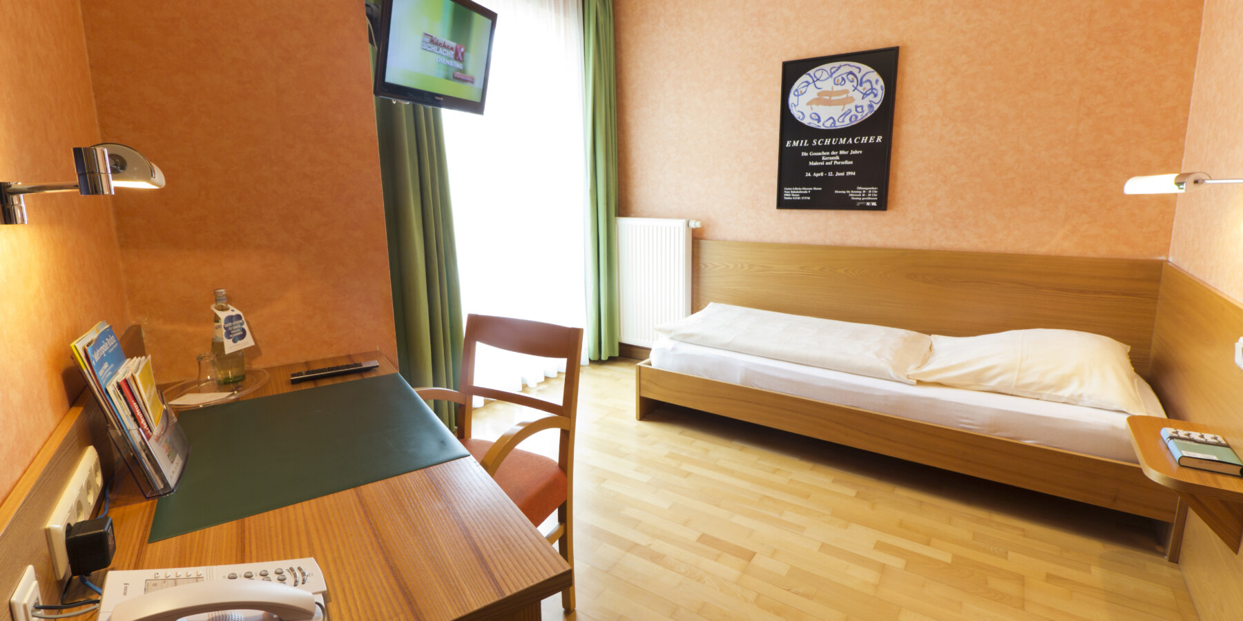 Feel almost at home in our single rooms! Modern and comfortably furnished, they invite you to relax quickly. The rooms were partly renovated last in 2017. Bed dimensions: 90×200 cmSie reisen alleine? Dann genießen Sie den Komfort unserer Standard Einzelzimmer mit Flachbildfernseher und WLAN.