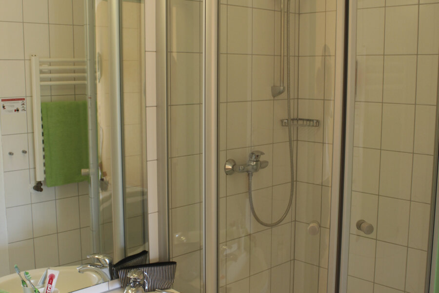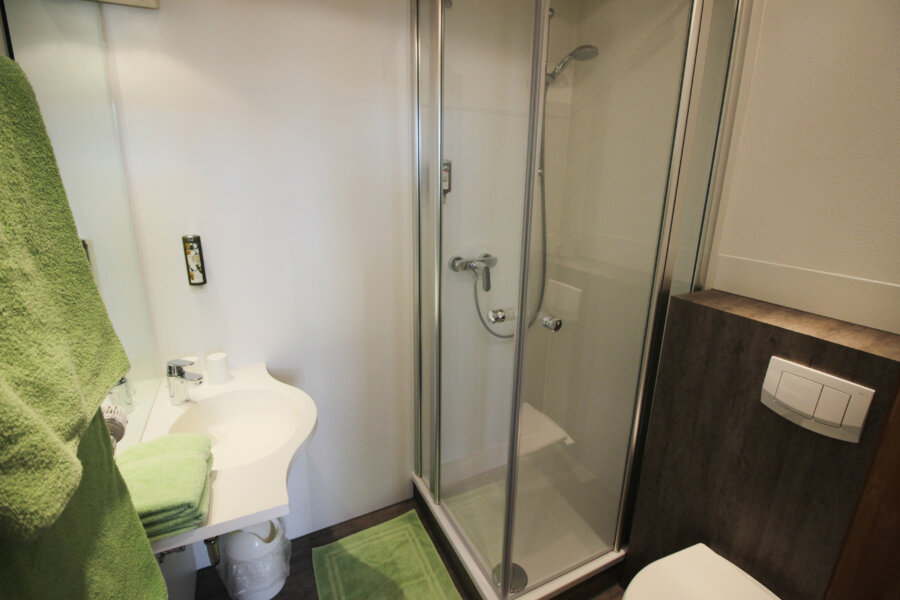 In the small but nice bathrooms with accents of wood or fresh green, large mirrors as well as pleasantly scented organic soaps ensure your well-being. In addition, all bathrooms have towel radiators for warming and drying your towels. A hair dryer is available in the cupboard.